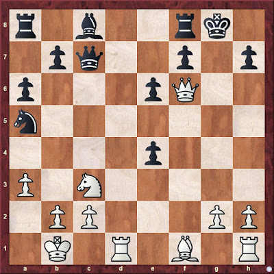c4 a5 16. b5 Nh5 17. d4 exd4 18. Nxd4 Bxd4 19. Bxd4 Nhf4 20. Ra3 Qe7 21. Ng3